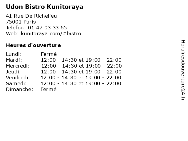 | Mardi | 12:00-14:30 et 19:00-22:00 |