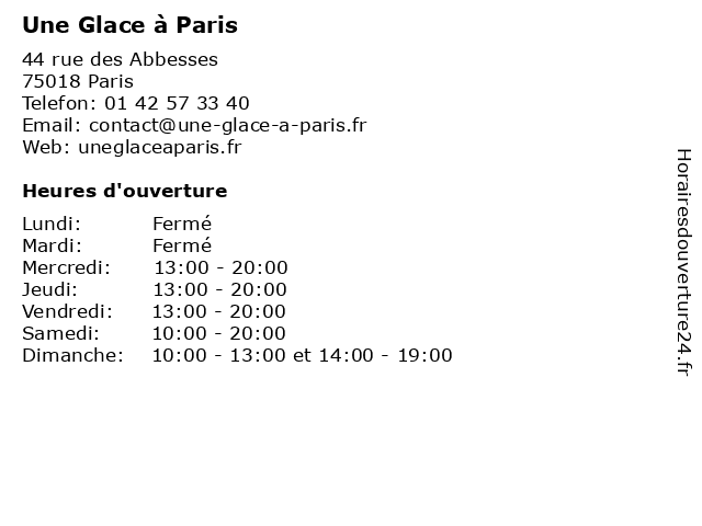 | Dimanche | 10:00-13:00 et 14:00-19:00 |