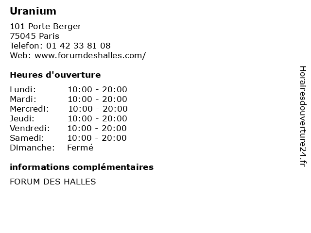 | Samedi | 10:00-20:00 |
