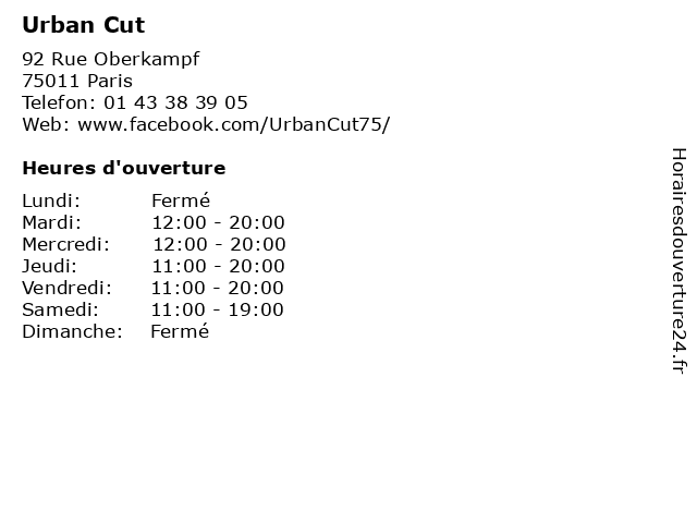 | Samedi | 11:00-19:00 |