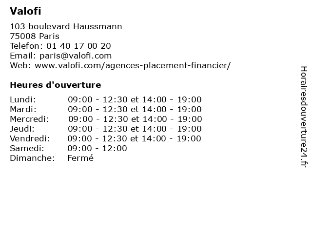 | Lundi | 09:00-12:30 et 14:00-19:00 |