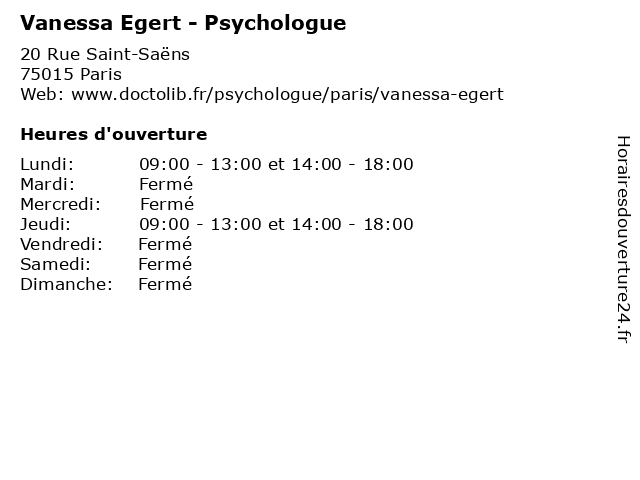 1 Dr Vanessa Slimani - Psychiatre (Distance: 0,01 km) 18-20 Rue Saint-Saëns, 75015 Paris consultation, docteur, dr, med, médecin, médecine, psychiatre, secrétariat, slimani, traitement, vanessa 2 Dr Vanessa Sultan - Chirurgien-dentiste (Distance: 0,20 km) 42 Boulevard de Grenelle, 75015 Paris chirurgien, consultation, dentiste, docteur, dr, med, médecin, sultan, traitement, vanessa 3 Vanessa Petitcollin - Hypnothérapeute (Distance: 0,80 km) 10 Rue du Laos, 75015 Paris hypno, hypnose, hypnothérapeute, petitcollin, sante, vanessa 4 Vanessa Mucci - Hypnothérapeute (Distance: 1,29 km) 176 Rue de Grenelle, 75007 Paris hypno, hypnose, hypnothérapeute, mucci, sante, vanessa 5 Maître Vanessa Hinder - Avocate (Distance: 1,42 km) 28 Rue de l'Amiral Hamelin, 75116 Paris avocate, avocats, cabinet, conseils, contentieux, hinder, juridique, justice, litiges, maître, services, vanessa 6 Vanessa Fondecave - Sage-femme (Distance: 1,56 km) 7 Rue de Casablanca, 75015 Paris consultation, docteur, femme, fondecave, med, médecin, sage, traitement, vanessa |