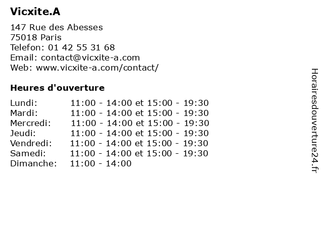 | Samedi | 11:00-14:00 et 15:00-19:30 |