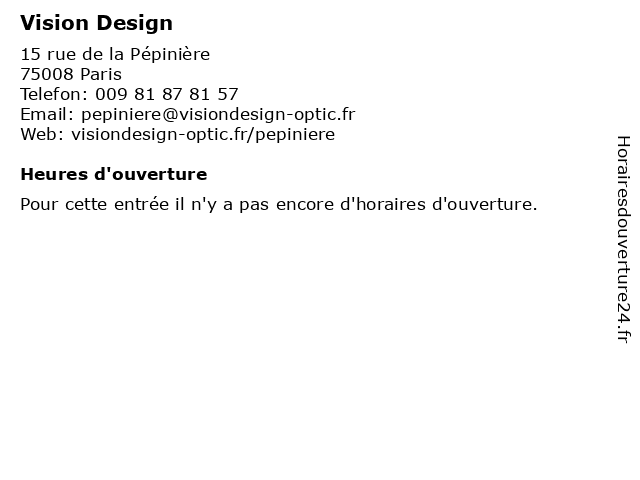 1 Vision Design (Distance: 1,23 km) 34 rue de Ponthieu, 75008 Paris design, entretien, lentilles, lunette, opticien, vision, vue 2 Vision Design (Distance: 2,07 km) 83 rue Saint Dominique, 75007 Paris design, divers, détail, lunettes, optic, opticien, optique, vision, vue 3 Vision Design (Distance: 2,89 km) 6 boulevard Magenta, 75010 Paris design, entretien, lentilles, lunette, opticien, vision, vue 4 Vision Design (Distance: 3,53 km) 8 Rue des Écoles, 75005 Paris design, lunettes, monture, opticien, optique, solaire, vision, vue 5 Vision Design (Distance: 4,27 km) 222 avenue de Versailles, 75016 Versailles design, entretien, lentilles, lunette, opticien, vision, vue 6 Diptic Design Agency (Distance: 0,24 km) 37 rue des Mathurins, 75008 Paris agence, agency, communication, design, diptic, développement, informatique, siège, solutions, web |