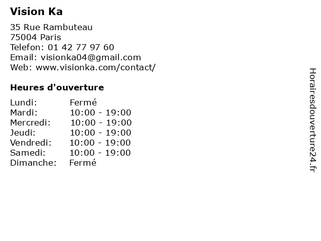 2 Vision Saint Martin (Distance: 0,99 km) 18 Rue du Faubourg Saint Martin, 75010 Paris lunettes, martin, monture, opticien, optique, saint, solaire, vision, vue 3 Morgan Vision (Distance: 1,33 km) 87 boulevard Richard Lenoir, 75011 Paris lentilles, lunettes, monture, morgan, opticien, optique, vision 4 Vision ABC (Distance: 1,61 km) 32 rue de Paradis, 75010 Paris abc, fournisseur, fournitures, industrielles, materiels, vision 5 Anna Ka Bazaar (Distance: 1,79 km) 16 Rue Keller, 75011 Paris anna, bazaar, ka, magasin de tissu, mercerie indienne 6 Opticien Vision Plus Paris - Trudaine (Distance: 2,41 km) 2 Avenue Trudaine, 75009 Paris opticien, paris, plus, trudaine, vision |