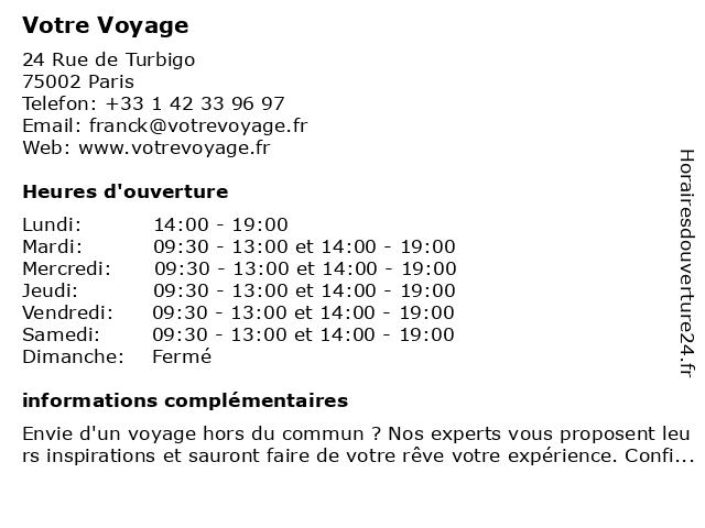 | Mardi | 09:30-13:00 et 14:00-19:00 |