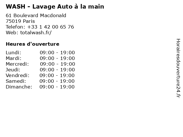 | Lundi | 09:00-19:00 |