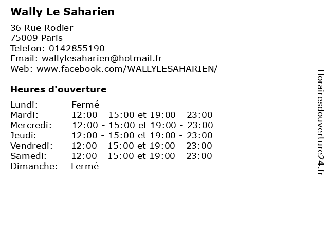 | Mardi | 12:00-15:00 et 19:00-23:00 |