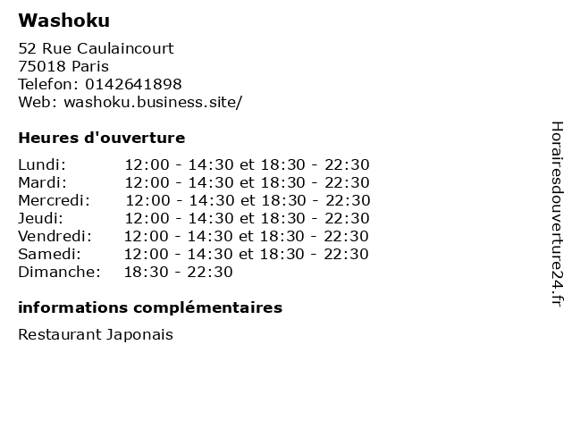 | Mardi | 12:00-14:30 et 18:30-22:30 |
