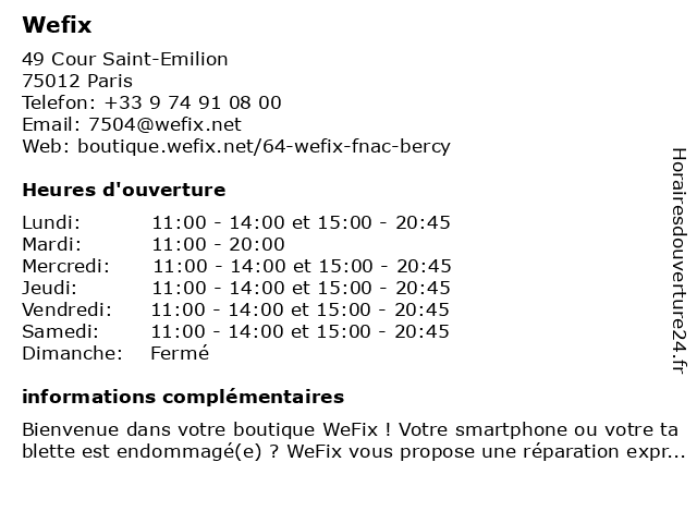 | Mercredi | 11:00-14:00 et 15:00-20:45 |