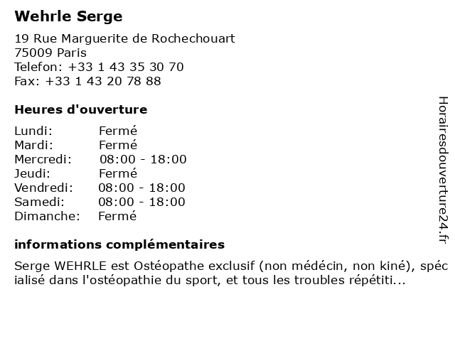 | Lundi | Fermé |