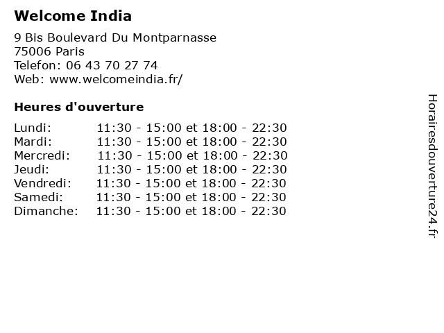 | Mardi | 11:30-15:00 et 18:00-22:30 |