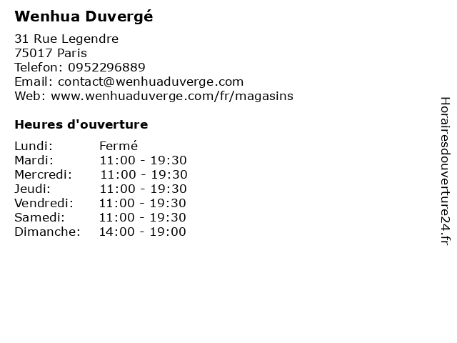 | Mercredi | 11:00-19:30 |