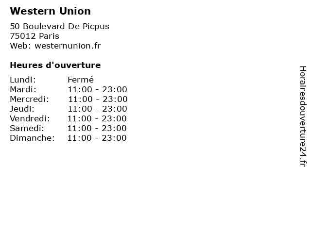 1 Western Union (Distance: 0,32 km) 90 Boulevard De Picpus, 75012 Paris centre de remmittance, l'argent, moneygram, transfert d'argent, union, western 2 Western Union (Distance: 0,45 km) 18 Cours De Vincennes, 75012 Paris centre de remmittance, l'argent, moneygram, transfert d'argent, union, western 3 Western Union (Distance: 0,72 km) 137 Boulevard Soult, 75012 Paris centre de remmittance, l'argent, moneygram, transfert d'argent, union, western 4 Western Union (Distance: 0,93 km) 34 Rue D Avron, 75020 Paris centre de remmittance, l'argent, moneygram, transfert d'argent, union, western 5 Western Union (Distance: 0,98 km) 56 Rue De Buzenval, 75020 Paris centre de remmittance, l'argent, moneygram, transfert d'argent, union, western 6 Western Union (Distance: 1,08 km) 95 Boulevard Diderot, 75012 Paris centre de remmittance, l'argent, moneygram, transfert d'argent, union, western |