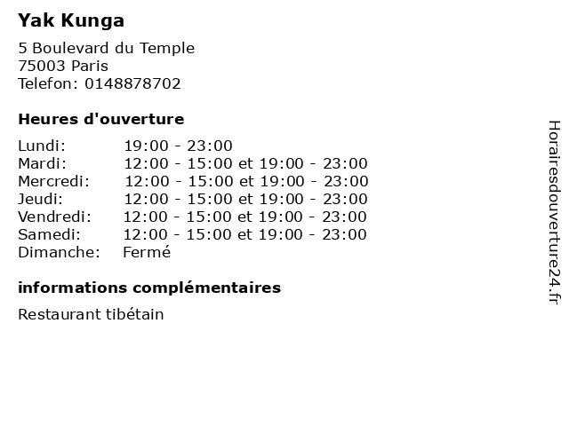 | Vendredi | 12:00-15:00 et 19:00-23:00 |