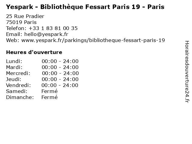 Termes de recherche pour Yespark - Bibliothèque Fessart Paris 19 - Paris:paris, bibliotheque, parking, yespark, 19, fessart |