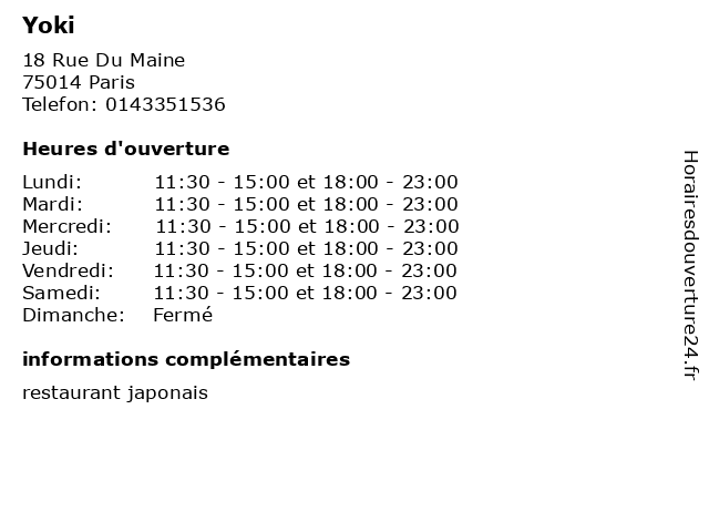 | Samedi | 11:30-15:00 et 18:00-23:00 |