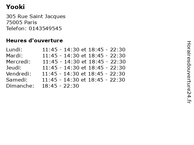 | Mardi | 11:45-14:30 et 18:45-22:30 |