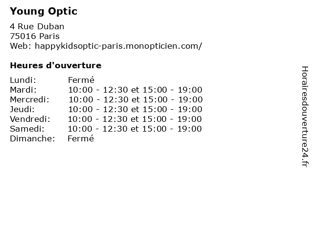 | Vendredi | 10:00-12:30 et 15:00-19:00 |