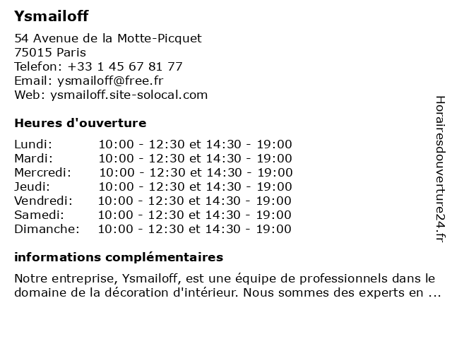 10:00-12:30 et 14:30-19:00 |