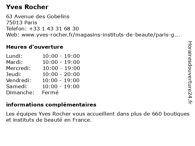 1 Yves Rocher (Distance: 0,53 km) 30 Avenue d'Italie, 75013 Paris 13eme Arrondissement crème de jour, démaquillant, epilation maillot, epilation sourcils, epilations, fond de teint, gel douche, gommage, idées cadeaux, institut de beauté, maquillage, mascara, modelage, monoï, parfum, rocher, rouge à lèvres, shampoing, soin visage, soins corps, vernis à ongles, yves 2 Yves Rocher (Distance: 1,83 km) . Place Louis Armand, 75517 Paris cafe, care, chaussures, enfants, homme, lingerie, mode femme, restaurant, rocher, service, shopping, yves 3 Yves Rocher (Distance: 1,84 km) 40 Avenue du Général Leclerc, 75014 Paris crème de jour, démaquillant, epilation maillot, epilation sourcils, epilations, fond de teint, gel douche, gommage, idées cadeaux, institut de beauté, maquillage, mascara, modelage, monoï, parfum, rocher, rouge à lèvres, shampoing, soin visage, soins corps, vernis à ongles, yves 4 Yves Rocher (Distance: 2,60 km) 17 Boulevard de Vaugirard, 75015 Paris crème de jour, démaquillant, epilation maillot, epilation sourcils, epilations, fond de teint, gel douche, gommage, idées cadeaux, institut de beauté, maquillage, mascara, modelage, monoï, parfum, rocher, rouge à lèvres, shampoing, soin visage, soins corps, vernis à ongles, yves 5 Yves Rocher (Distance: 2,65 km) 242 Rue de Charenton, 75012 Paris crème de jour, démaquillant, epilation maillot, epilation sourcils, epilations, fond de teint, gel douche, gommage, idées cadeaux, institut de beauté, maquillage, mascara, modelage, monoï, parfum, rocher, rouge à lèvres, shampoing, soin visage, soins corps, vernis à ongles, yves 6 Yves Rocher (Distance: 2,69 km) 11 Boulevard de Vaugirard, 75015 Paris beauté, cosmétique, maquillage, parfumerie, rocher, soins, yves |