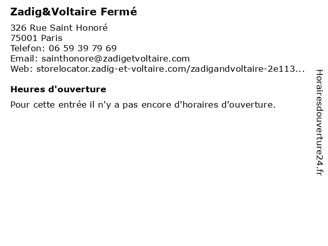 | Appeler Zadig&Voltaire Fermé | |