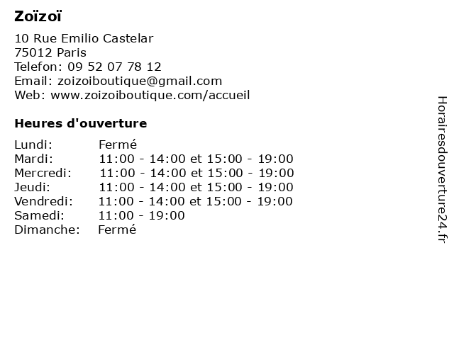 | Mardi | 11:00-14:00 et 15:00-19:00 |