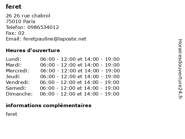 | Samedi | 06:00-12:00 et 14:00-19:00 |