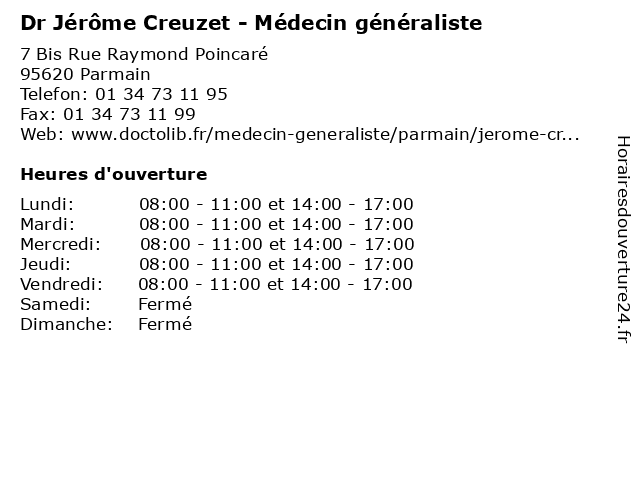 | Mardi | 08:00-11:00 et 14:00-17:00 |