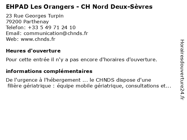 | Appeler EHPAD Les Orangers - CH Nord Deux-Sèvres | |
