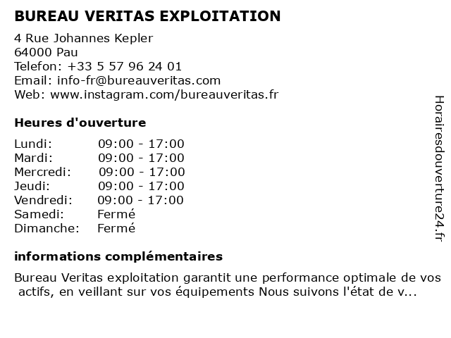 1 BUREAU VERITAS CONSTRUCTION (Distance: 0,00 km) 4 Rue Johannes Kepler, 64000 Pau bureau, construction, veritas 2 BUREAU VERITAS SOLUTIONS (Distance: 0,00 km) 4 Rue Johannes Kepler, 64000 Pau bureau, solutions, veritas 3 BUREAU VERITAS FORMATION (Distance: 0,00 km) 4 Rue Johannes Kepler, 64000 Pau bureau, formation, veritas 4 Bureau Veritas Construction (Distance: 0,00 km) 4 Rue Johannes Kepler, 64000 Pau bureau, construction, veritas 5 Qualiconsult Exploitation (Distance: 4,10 km) Allée Catherine de Bourbon, 64000 Pau exploitation, qualiconsult 6 Bureau Information Jeunesse (Distance: 4,38 km) . Place de la Tour, 64160 Morlaas administration, assoc, bureau, information, jeunesse, point, services, services publics |