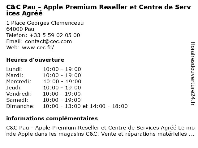 | Dimanche | 10:00-13:00 et 14:00-18:00 |