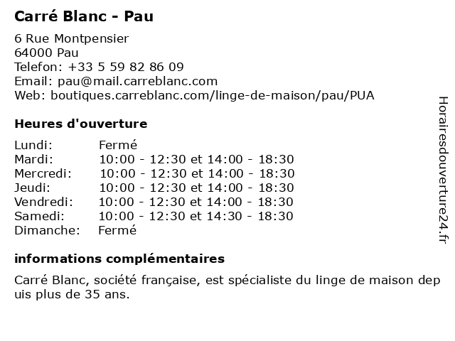 | Lundi | Fermé |