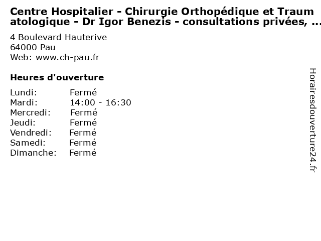 1 Centre Hospitalier - Chirurgie Orthopédique et Traumatologique - Dr Igor Benezis - surveillance post-opératoire (Distance: 0,00 km) 4 Boulevard Hauterive, 64000 Pau benezis, bureau, centre, chirurgie, consultation, dr, et, hospitalier, igor, maladie, med, médecin, médecine, opératoire, orthopédique, post, pratique, surveillance, thérapie, traumatologique 2 Centre Hospitalier - Chirurgie Orthopédique et Traumatologique - Dr Igor Benezis - consultation pluridisciplinaire : pathologies du sport. Cette consultation se tient dans le bâtiment Hauterive (Distance: 0,00 km) 4 Boulevard Hauterive, 64000 Pau benezis, bureau, bâtiment, centre, cette, chirurgie, consultation, dans, dr, du, et, hauterive, hospitalier, igor, le, maladie, med, médecin, médecine, orthopédique, pathologies, pluridisciplinaire, pratique, se, sport., thérapie, tient, traumatologique 3 Centre Hospitalier - Chirurgie Orthopédique et Traumatologique - Dr Henri Duraffour consultations privées (Distance: 0,00 km) 4 Boulevard Hauterive, 64000 Pau bureau, centre, chirurgie, consultation, consultations, dr, duraffour, et, henri, hospitalier, maladie, med, médecin, médecine, orthopédique, pratique, privées, thérapie, traitement, traumatologique 4 Centre Hospitalier - Chirurgie Orthopédique et Traumatologique - Dr Henri Duraffour consultations publiques (Distance: 0,00 km) 4 Boulevard Hauterive, 64000 Pau bureau, centre, chirurgie, consultation, consultations, dr, duraffour, et, henri, hospitalier, maladie, med, médecin, médecine, orthopédique, pratique, publiques, thérapie, traitement, traumatologique 5 Centre Hospitalier - Chirurgie Orthopédique et Traumatologique - Dr Hammel pathologies chevilles/pieds (Distance: 0,00 km) 4 Boulevard Hauterive, 64000 Pau bureau, centre, chevilles/pieds, chirurgie, consultation, dr, et, hammel, hospitalier, maladie, med, médecin, médecine, orthopédique, pathologies, pratique, thérapie, traitement, traumatologique 6 Centre Hospitalier - Chirurgie Orthopédique et Traumatologique - Dr Hammel consultation de suivi de traumatologie (Distance: 0,00 km) 4 Boulevard Hauterive, 64000 Pau bureau, centre, chirurgie, consultation, de, dr, et, hammel, hospitalier, maladie, med, médecin, médecine, orthopédique, pratique, suivi, thérapie, traitement, traumatologie, traumatologique |