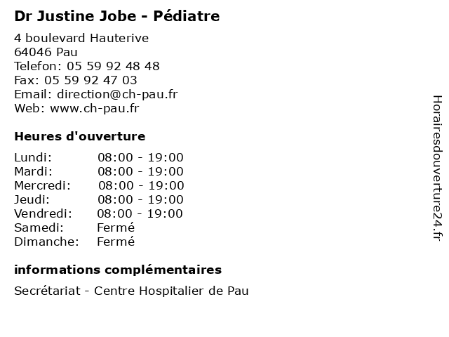 | Lundi | 08:00-19:00 |