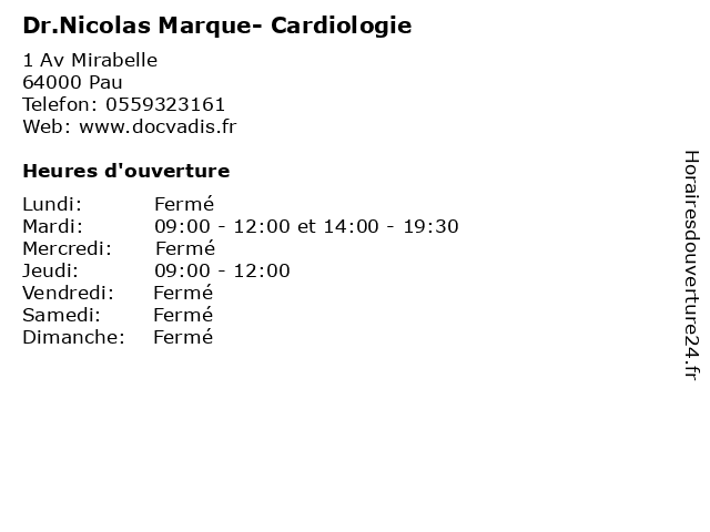 | Mardi | 09:00-12:00 et 14:00-19:30 |