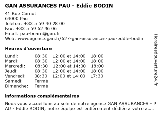 Termes de recherche pour GAN ASSURANCES PAU - Eddie BODIN:pau, gan, assurances, bodin, eddie |