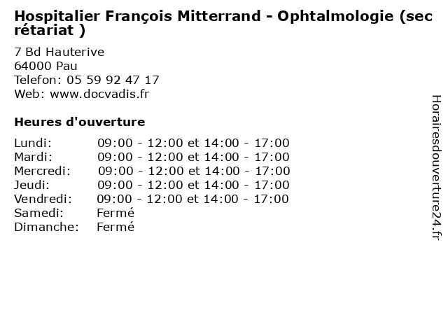 Termes de recherche pour Hospitalier François Mitterrand - Ophtalmologie (secrétariat ):francois, santé, secretariat, hospitalier, docteur, consultation, mitterrand, ophtalmologie |