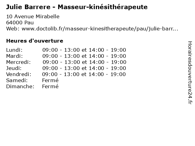 | Lundi | 09:00-13:00 et 14:00-19:00 |