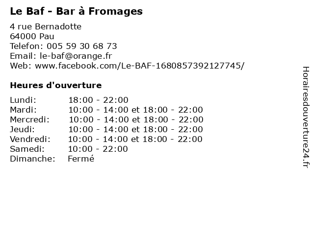 | Mardi | 10:00-14:00 et 18:00-22:00 |