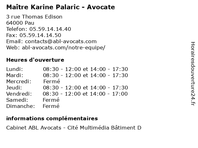 | Lundi | 08:30-12:00 et 14:00-17:30 |