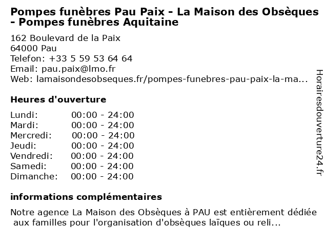 1 Pompes funèbres Pau Alsace Lorraine -La Maison des Obsèques - Pompes funèbres Aquitaine (Distance: 2,75 km) 120 Boulevard d'Alsace Lorraine, 64000 Pau alsace, aquitaine, des, funèbres, la, lorraine, maison, obsèques, pau, pompes 2 Pompes funèbres Bizanos - La Maison des Obsèques - Pompes funèbres Aquitaine (Distance: 2,96 km) 22 Avenue du Corps Franc Pommiès, 64320 Bizanos aquitaine, bizanos, des, funèbres, la, maison, obsèques, pompes 3 Centre de Soins La Nouvelle Aquitaine - emeis (Distance: 0,24 km) 152 Boulevard de la Paix, 64000 Pau aquitaine, centre, clinique spécialisée, consultations externes, de, emeis, hospitalisation complète, hospitalisation de jour adolescents, hospitalisation de jour adultes, la, médecin, nouvelle, projet de soins individualisé, psychiatre, psychiatrie générale adulte, psychologue, santé mentale, soins 4 IRFSS Croix Rouge Française - Nouvelle Aquitaine (Distance: 1,07 km) 55 Rue du Loup, 64000 Pau aquitaine, croix, croix rouge, diplômes, ecoles, formation, française, irfss, nouvelle, rouge 5 Aestimo et Aquitaine Expertise (Distance: 1,17 km) 77 Avenue des Lilas, 64000 Pau aestimo, aquitaine, et, expertise 6 CNAM Nouvelle-Aquitaine - Conservatoire National des Arts et Métiers (Distance: 1,50 km) 2 Avenue du Président Angot, 64000 Pau apprentissage, aquitaine, arts, campus, centre, cnam, conservatoire, des, et, formation, métier, métiers, national, nouvelle |