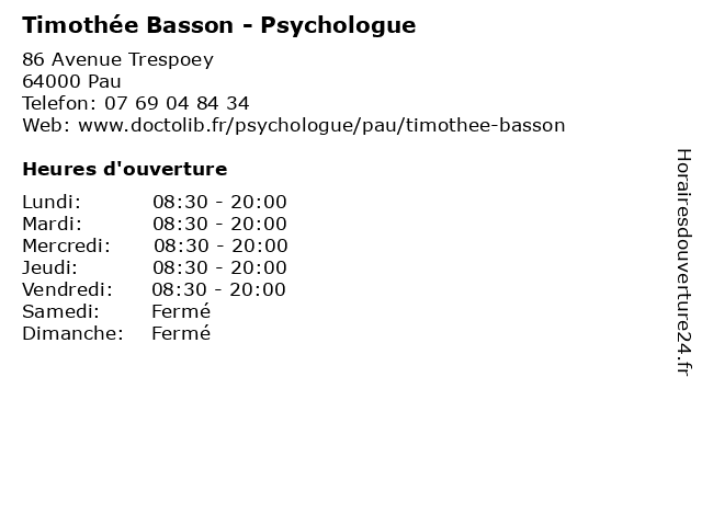 Termes de recherche pour Timothée Basson - Psychologue:santé, soins, psychologue, psychiatre, timothee, psy, basson |