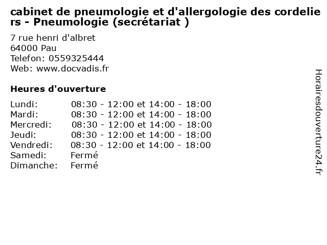 Termes de recherche pour cabinet de pneumologie et d'allergologie des cordeliers - Pneumologie (secrétariat ):et, de, des, cabinet, santé, cordeliers, secretariat, pneumologie, docteur, consultation, d'allergologie |