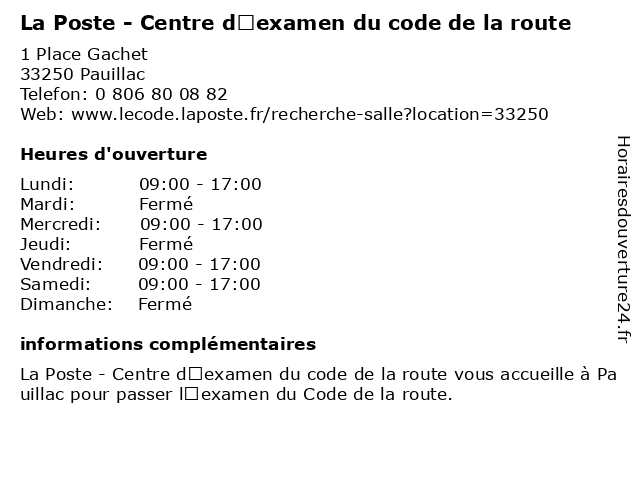 Termes de recherche pour La Poste - Centre d’examen du code de la route:poste, la, du, de, route, centre, code, d’examen, centre d'évaluation scolaire, école technique |