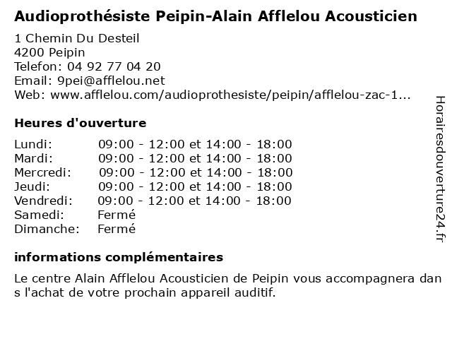 Termes de recherche pour Audioprothésiste Peipin-Alain Afflelou Acousticien:peipin, alain, afflelou, acousticien, audioprothésiste, audiologie, clinique médicale |