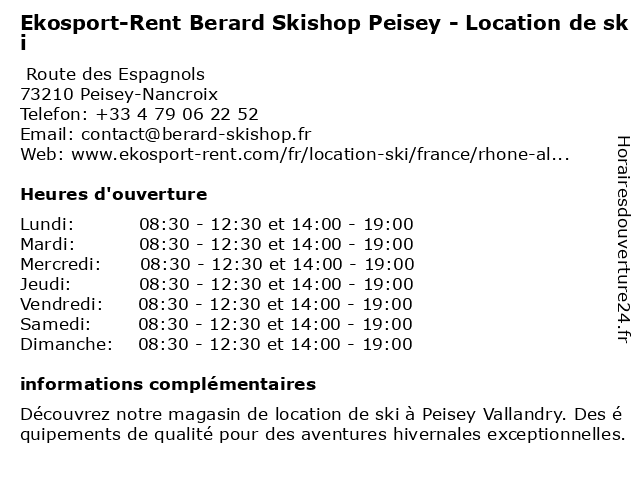 | Samedi | 08:30-12:30 et 14:00-19:00 |