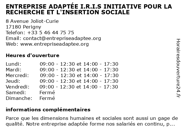 Termes de recherche pour ENTREPRISE ADAPTÉE I.R.I.S INITIATIVE POUR LA RECHERCHE ET L'INSERTION SOCIALE:la, et, pour, entreprise, sociale, recherche, adaptee, initiative, l'insertion, i.r.i.s |