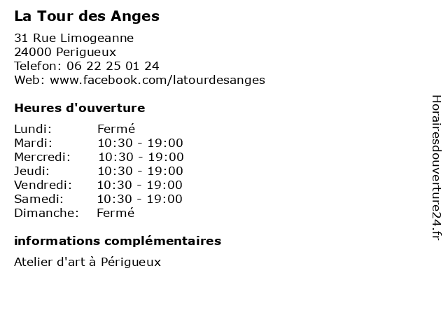 1 Hotel Suites de La Tour Périgueux Centre (Distance: 0,32 km) 13 Rue Condé, 24000 Périgueux bar, centre, de, hotel, la, périgueux, restaurant, service, suites, tour 2 Au Tour des Traditions (Distance: 5,52 km) espace commercial La Couture, 24660 Notre-dame-de-Sanilhac au, boulangerie, des, patisserie, restauration, tour, traditions, viennoiserie 4 Sogeres Tour Horizon (Distance: 17,82 km) Ecole De Savignac, 24420 Savignac Les Eglises horizon, restaurants, sogeres, tour 5 By Armelle - Boutique créateur (Distance: 0,16 km) 1 Rue de la Clarté, 24000 Perigueux armelle, artisanat, bijoux, boutique, bracelets, by, créateur, horlogerie 6 CAPEB (Distance: 4,67 km) 7 Boulevard de l’Industrie, 24430 Marsac-sur-l'Isle bâtiment, bâtiments, capeb, confédération, de, des, du, entreprises, et, l'artisanat, organisation, petites, soutiens |