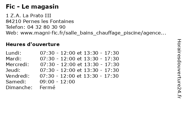 | Lundi | 07:30-12:00 et 13:30-17:30 |